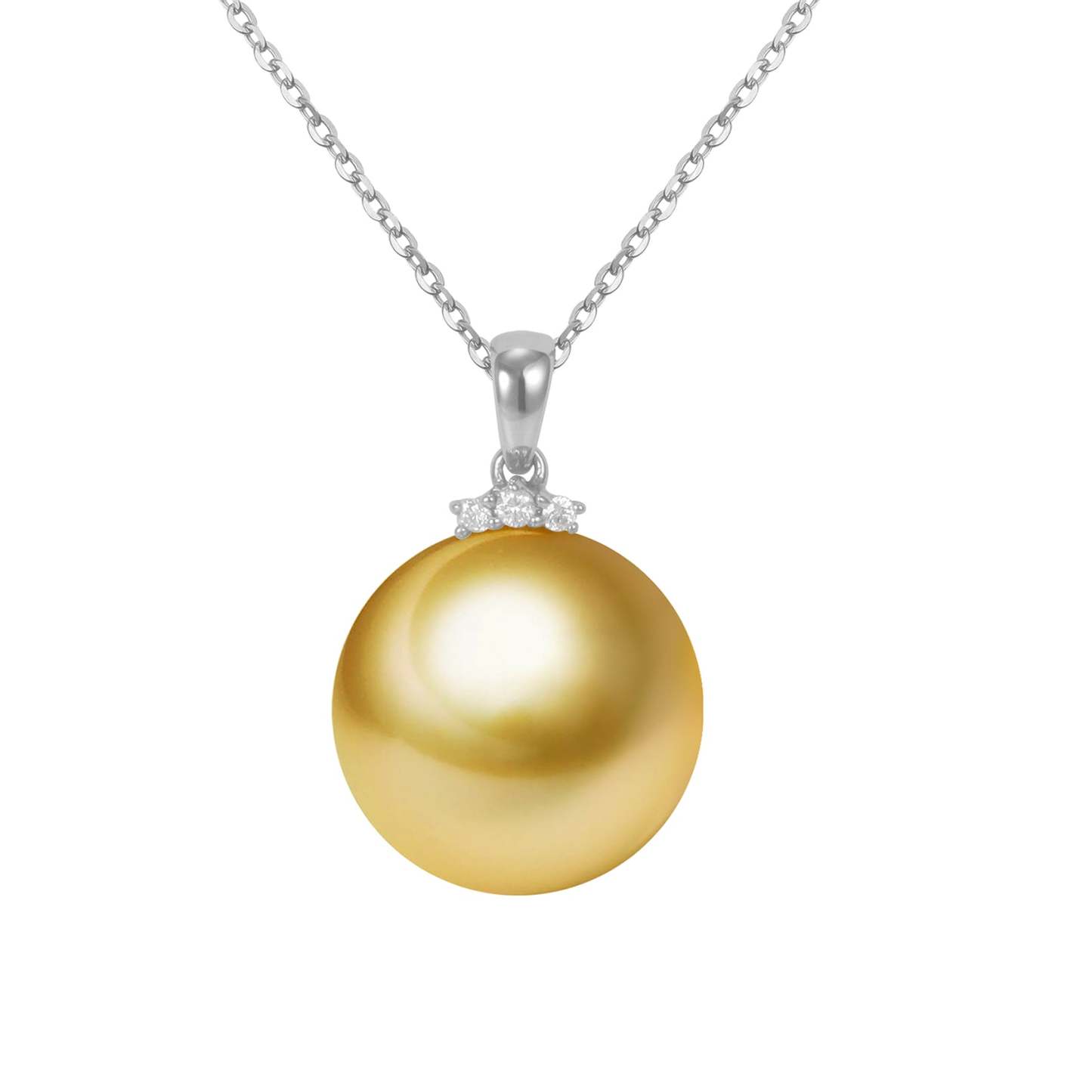 A timeless Edison Pearl is topped with a cluster of exquisite diamonds and paired with a modern G18k Solid Gold chain as an update to a classic look.
